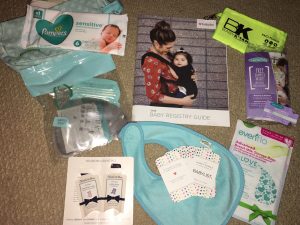 (Disclaimer: I have not been paid to endorse these sites, stores or items, this is all searching and receiving of awesome free baby stuff of my own free will. ALSO…these companies seem to change up the contents and brands so what I got may be slightly different)